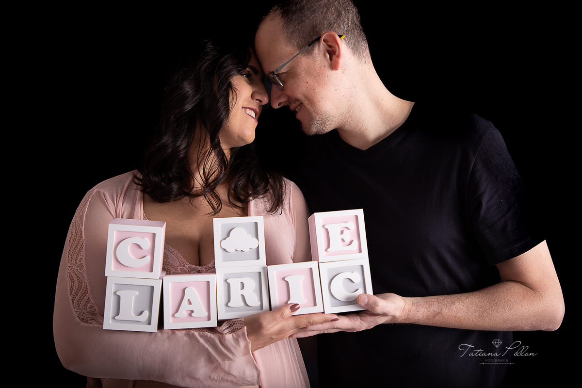 A Carol chegou até o estúdio com seu marido para realizar seu sonho de registrar o barrigão da princesa Clarice.